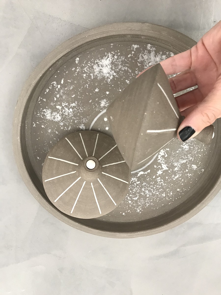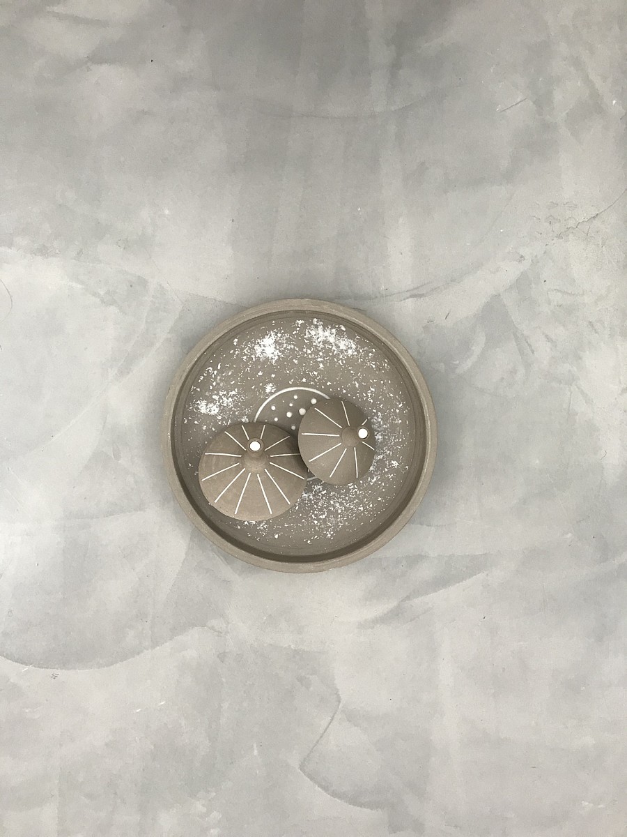 Ένα εξαιρετικό έργο τέχνης, μια πιατέλα σε μίνιμαλ γραμμή με δύο σβούρες.